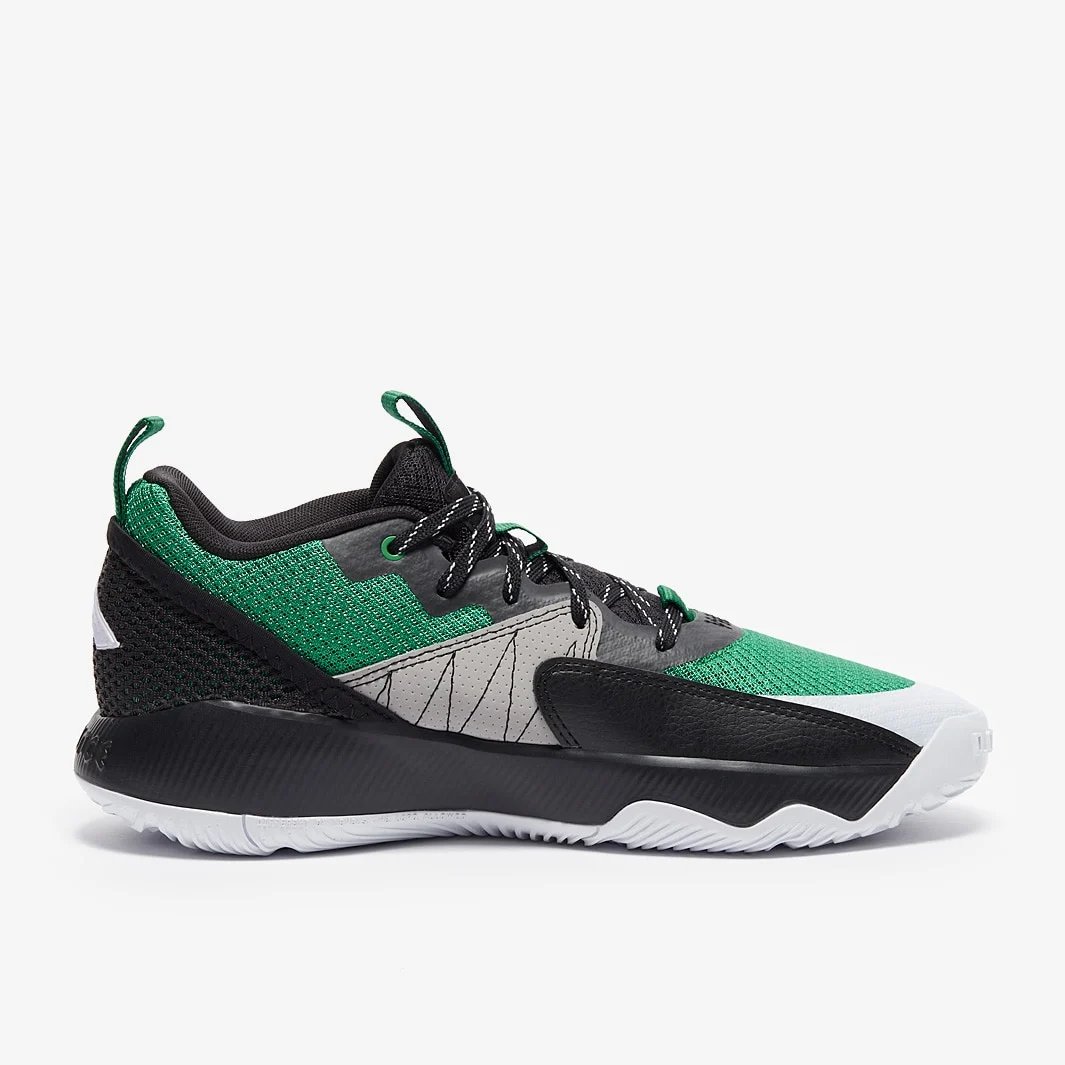Take on all challenges with the adidas Dame Certified in Court Green/Core Black/Footwear White, with performance-focused Bounce cushioning and an upper inspired by Damian’s work from both the Court and Recording Studio.