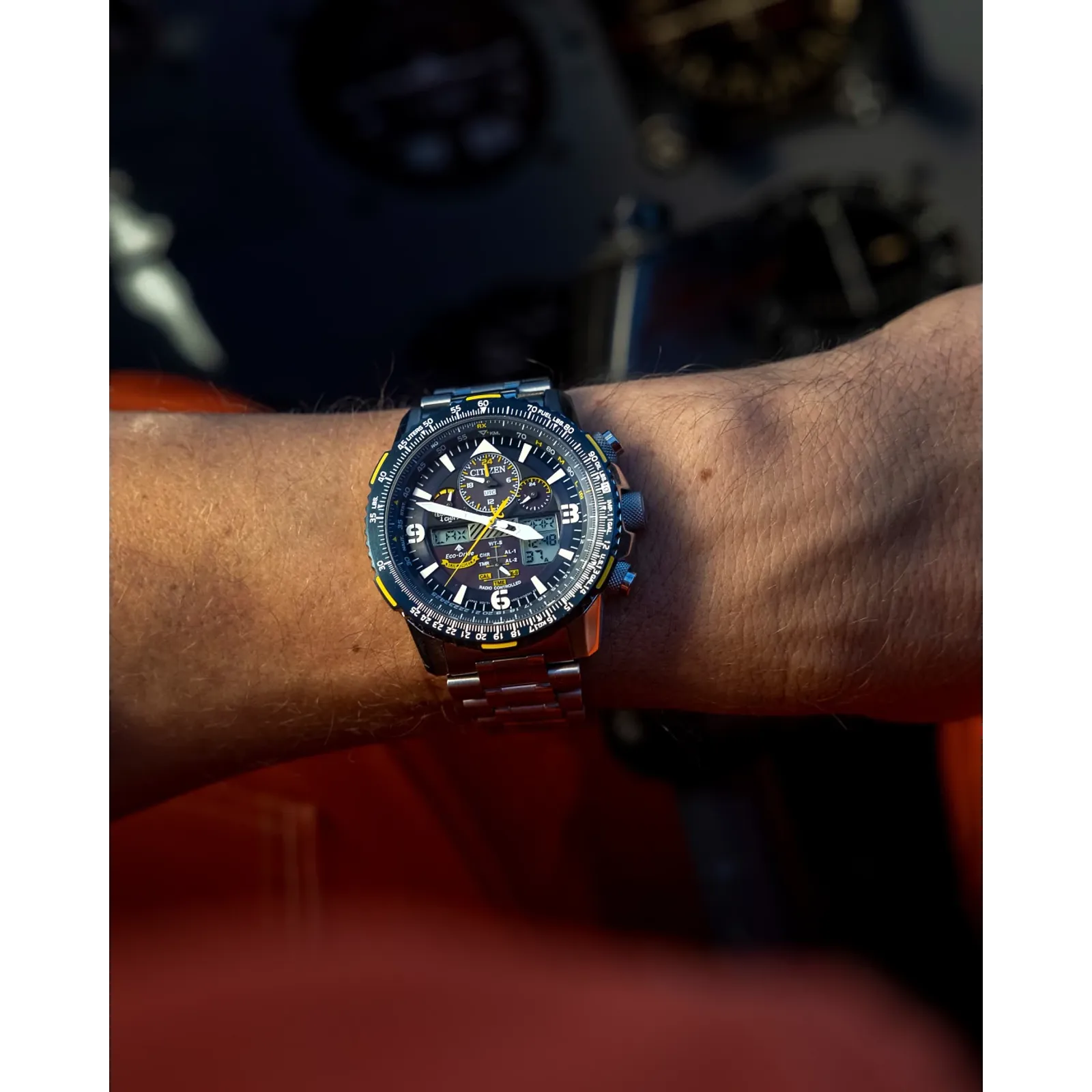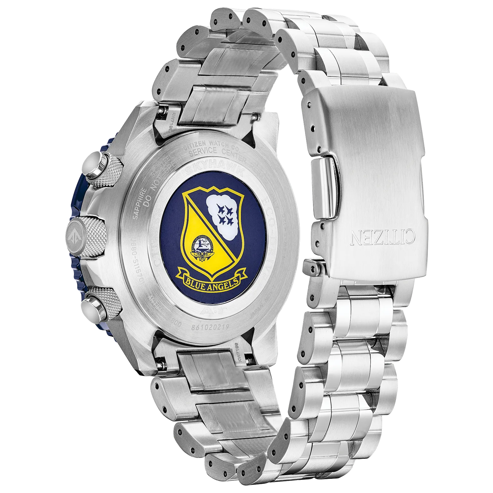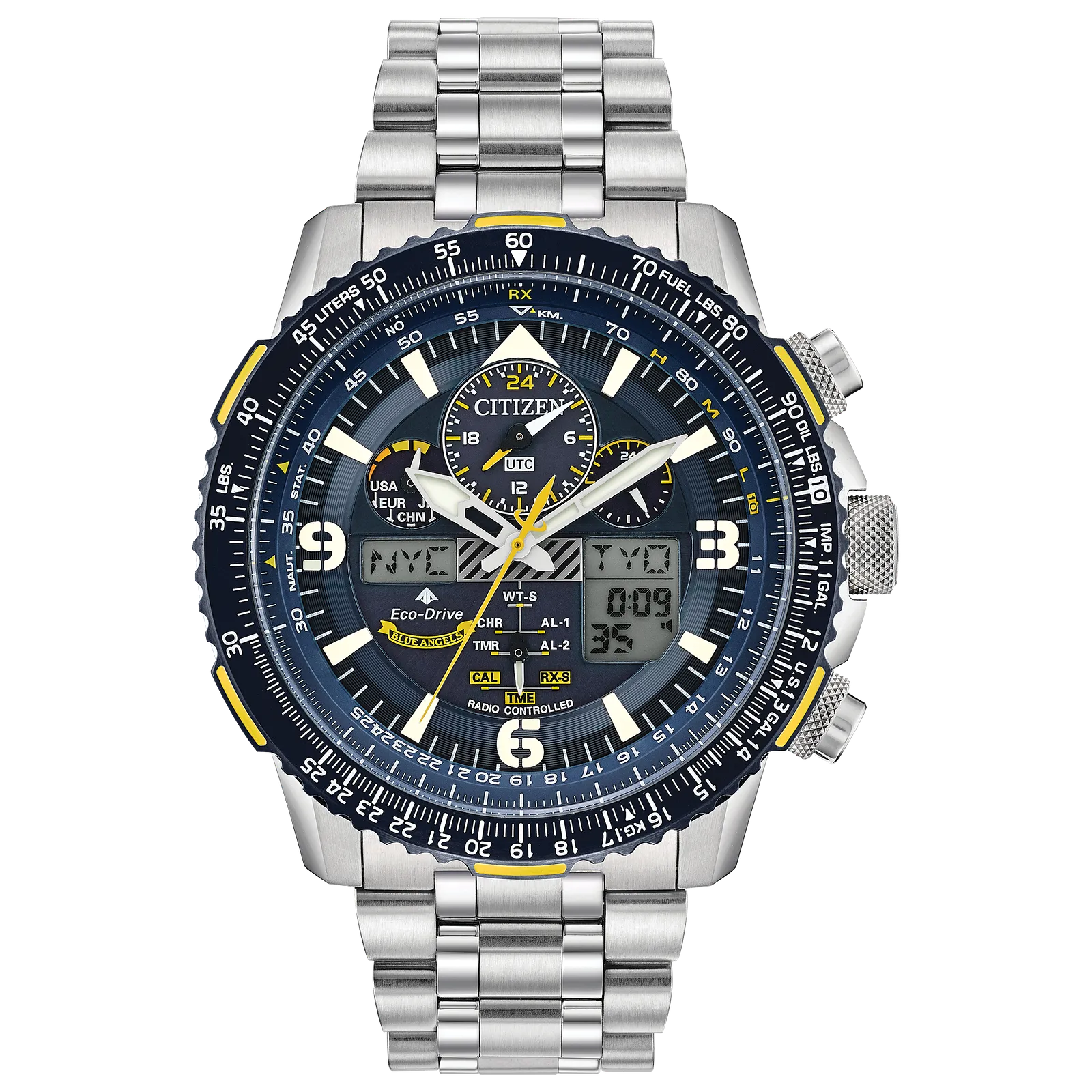 Citizen Men’s Stainless Steel Analog-Digital Blue Angels Chrono SS Bracelet Blue Dial Eco-Drive Watch Promaster Skyhawk A-T JY8078-52L