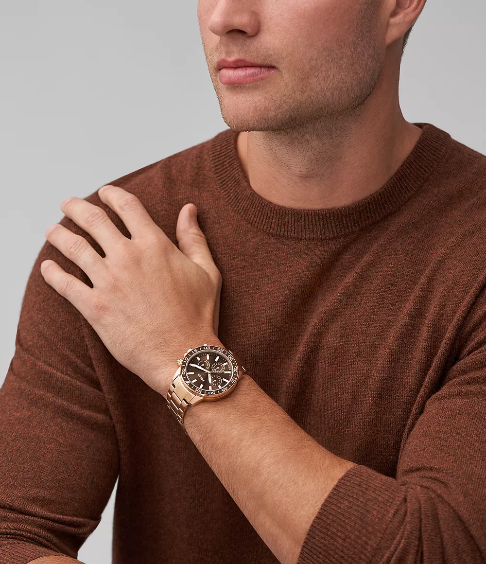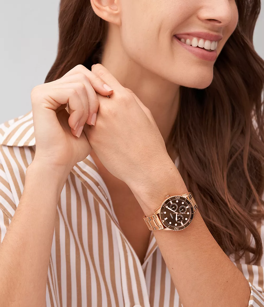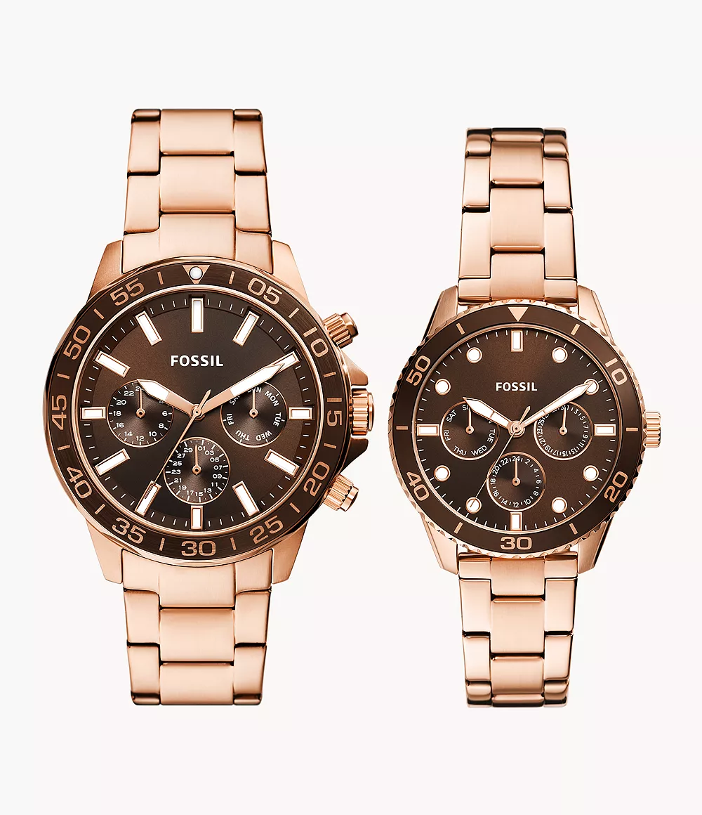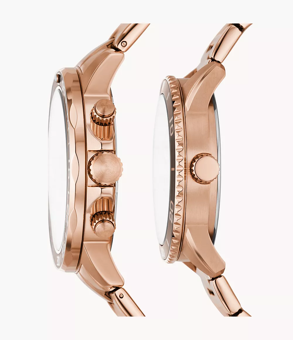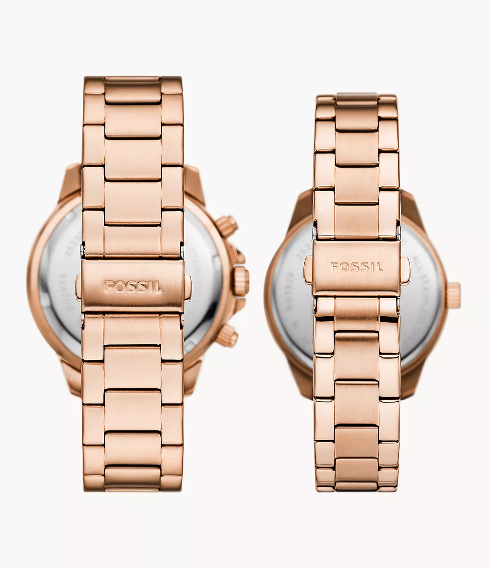 Fossil His and Hers Multifunction Rose Gold-Tone Stainless Steel Watch Box BQ2827SET