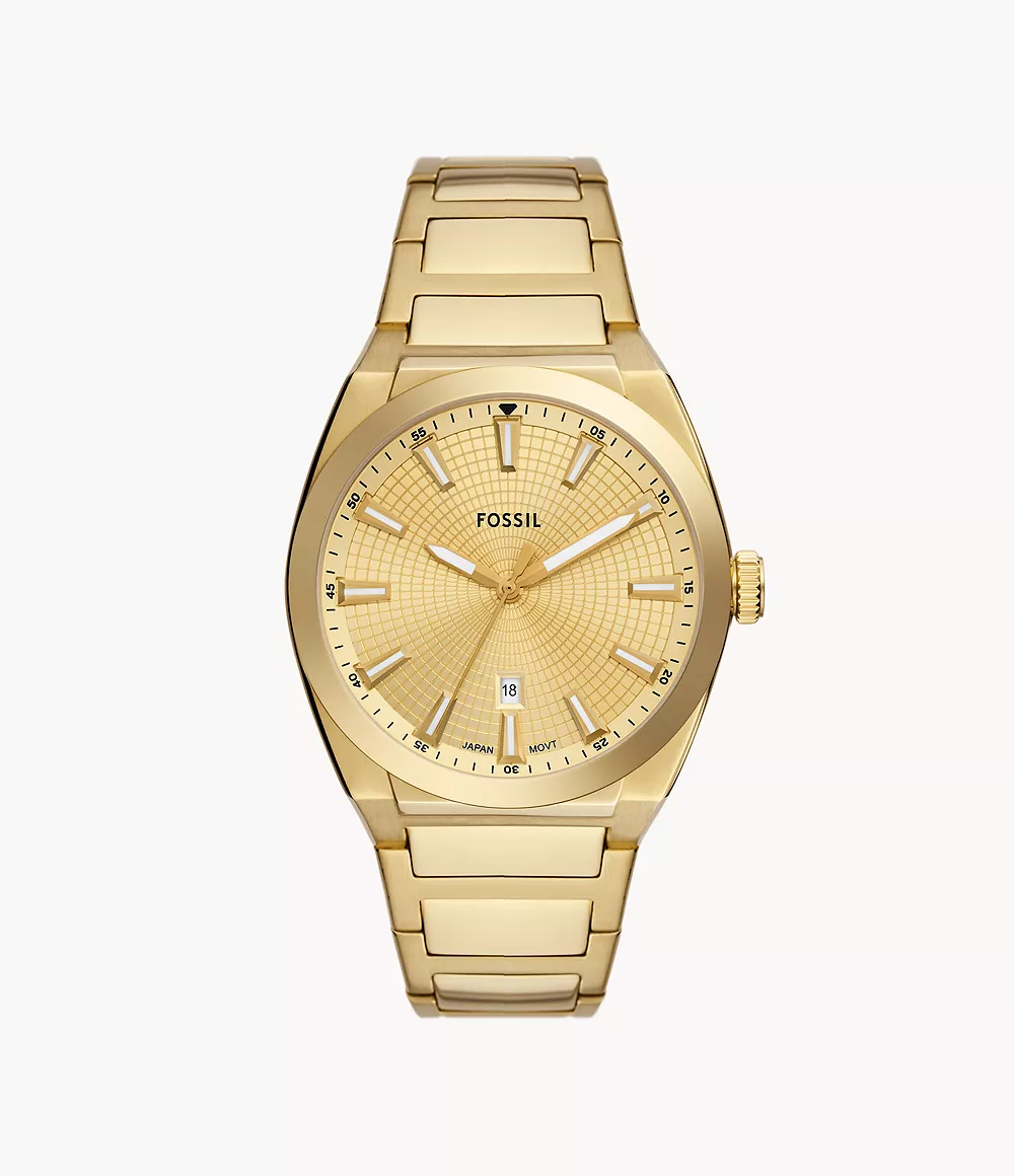 Fossil Men’s Everett Three-Hand Date Gold-Tone Stainless Steel Watch FS5965