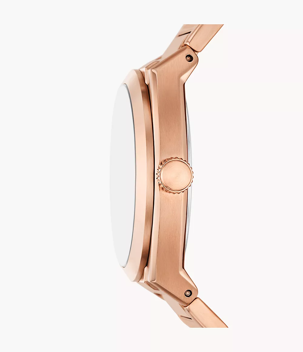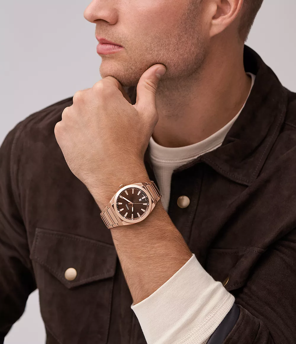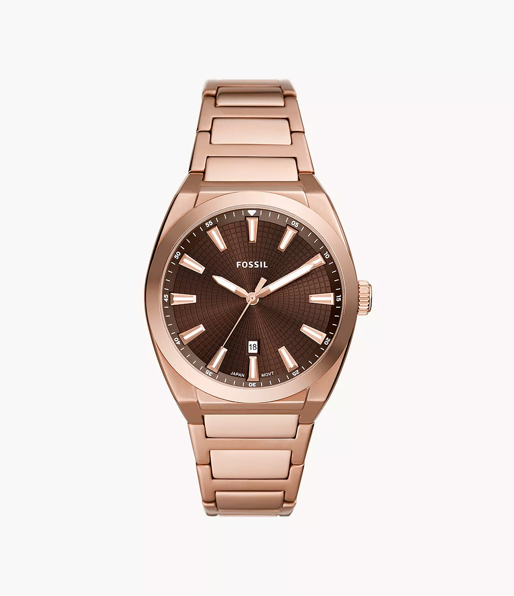 Fossil Men’s Everett Three-Hand Date Rose Gold-Tone Stainless Steel Watch FS6028
