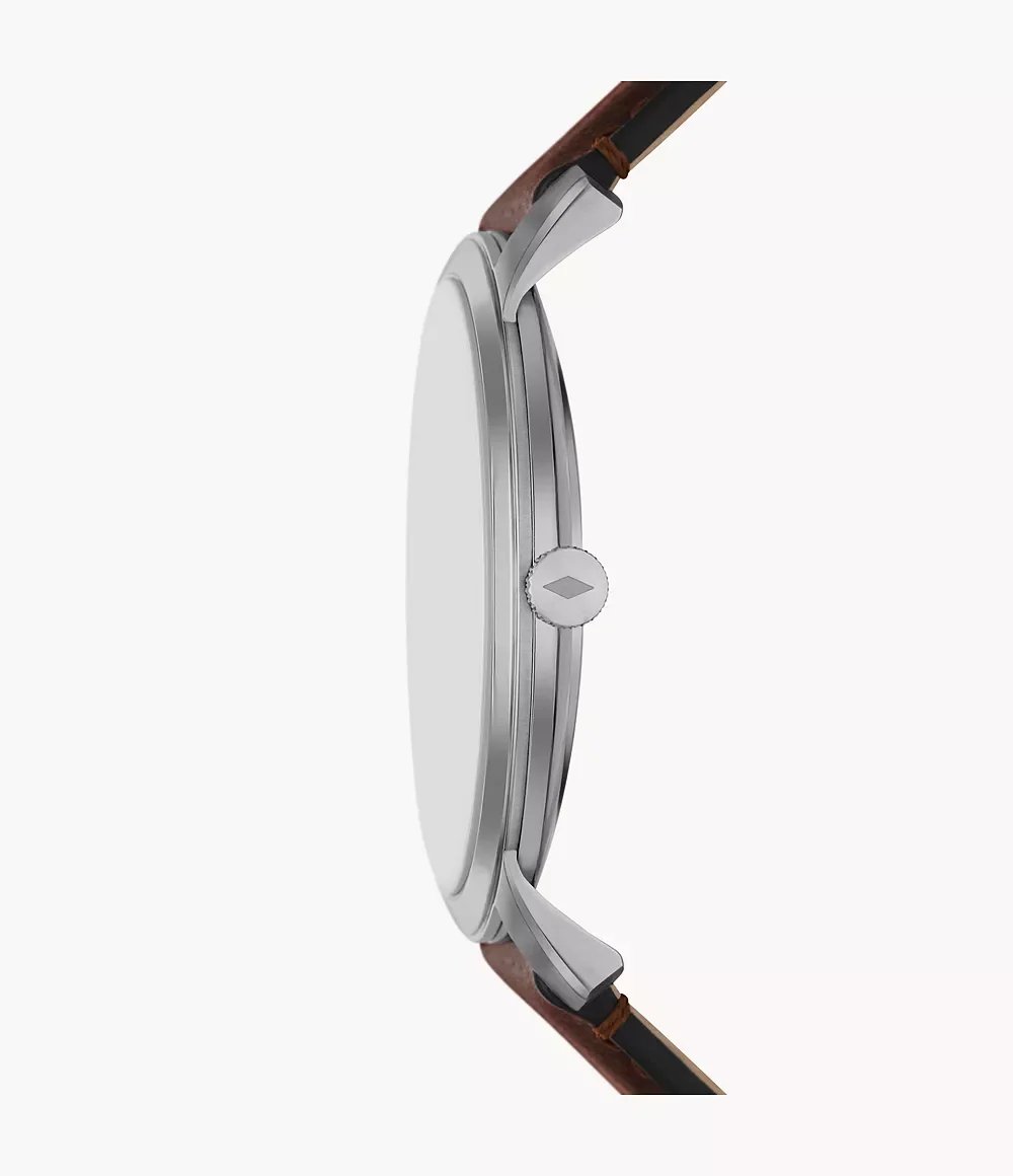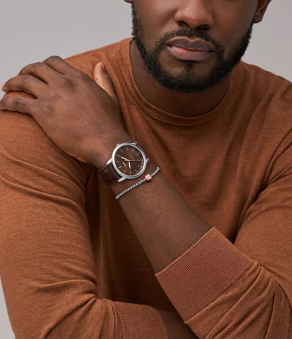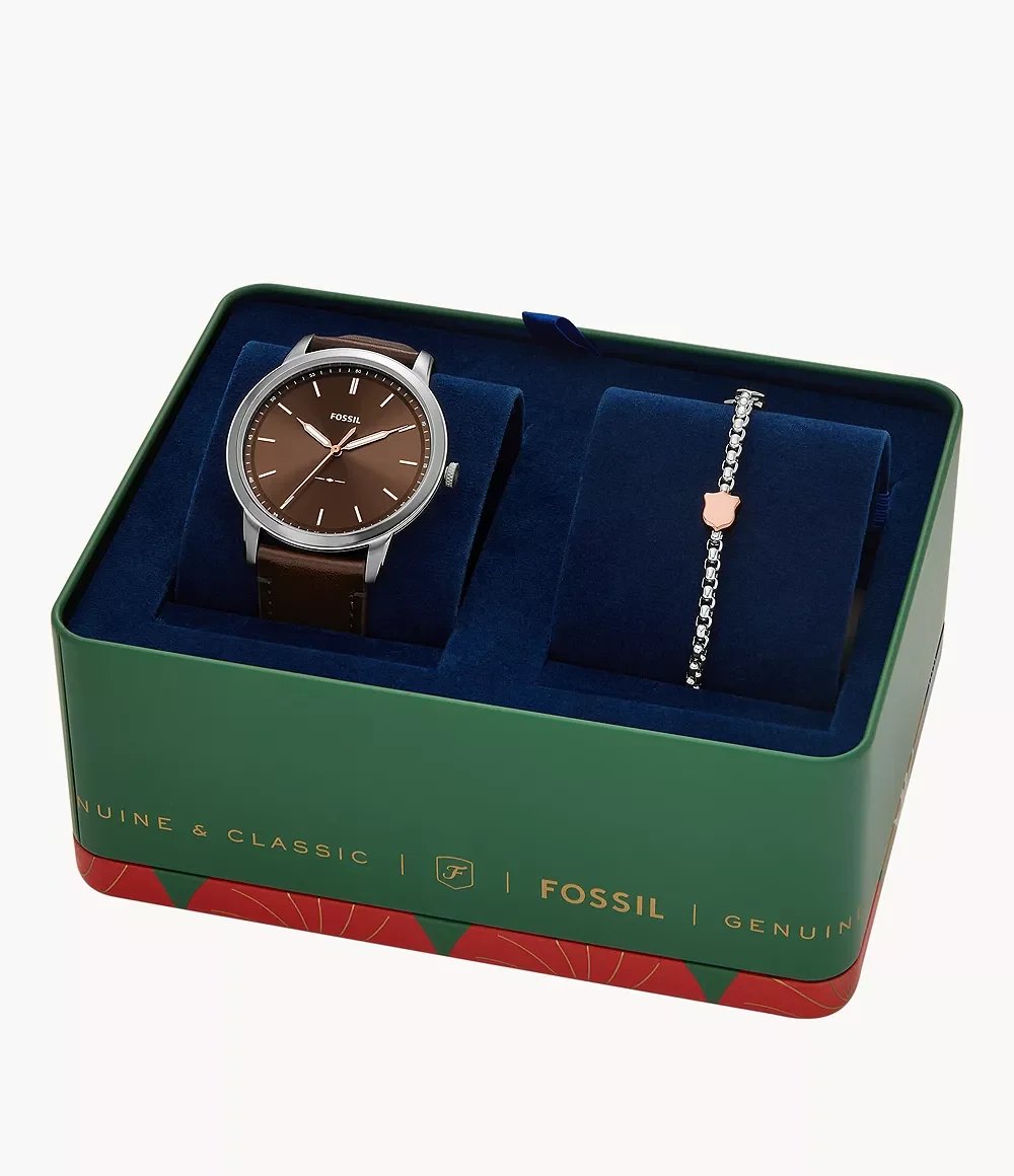 Fossil Men’s Minimalist Three-Hand Brown Leather Watch and Bracelet Box Set FS6019SET