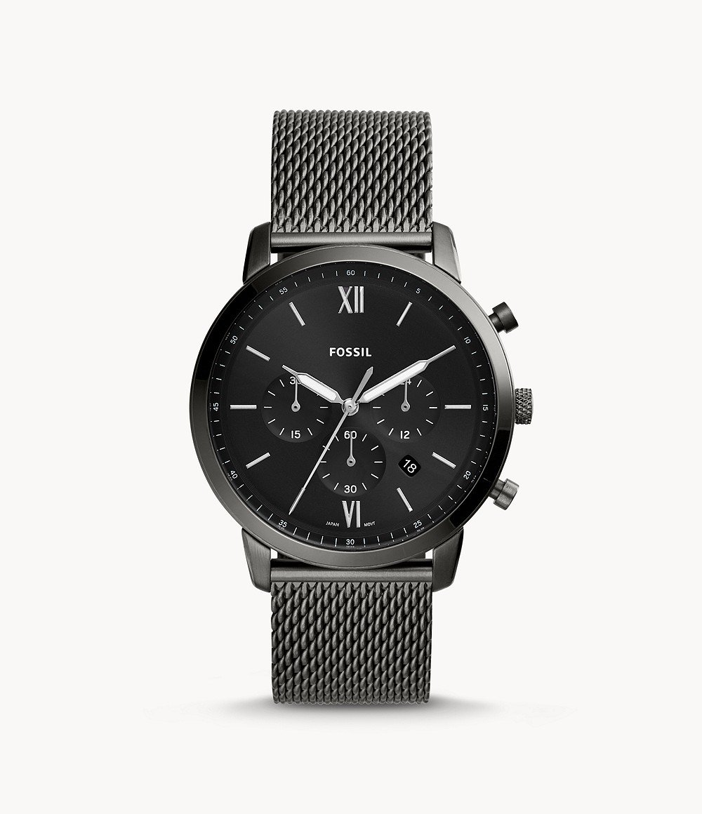 Fossil Men’s Neutra Chronograph Smoke Stainless Steel Mesh Watch FS5699