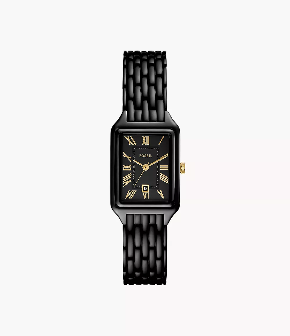 Fossil Women’s Raquel Three-Hand Date Black Stainless Steel Watch