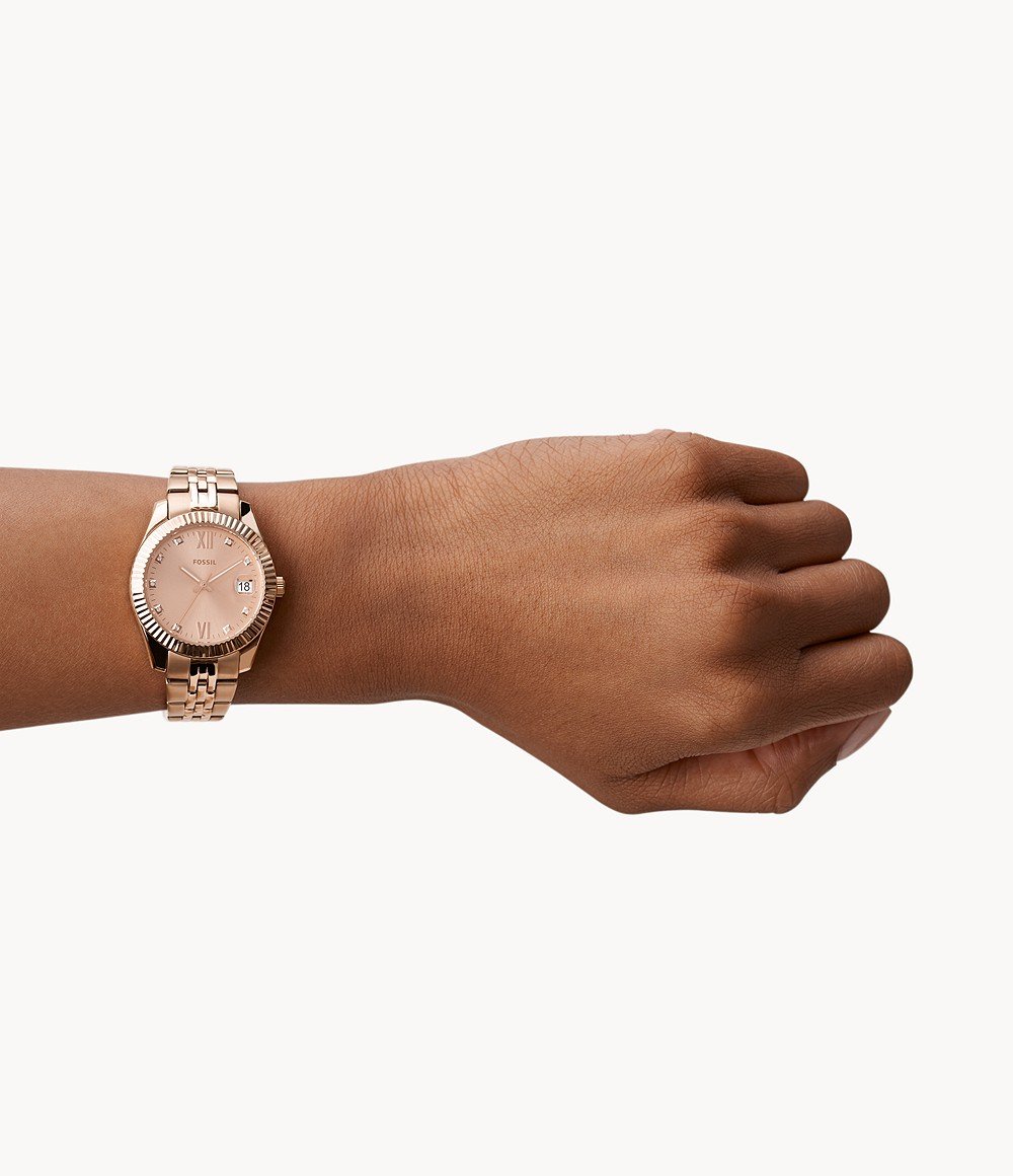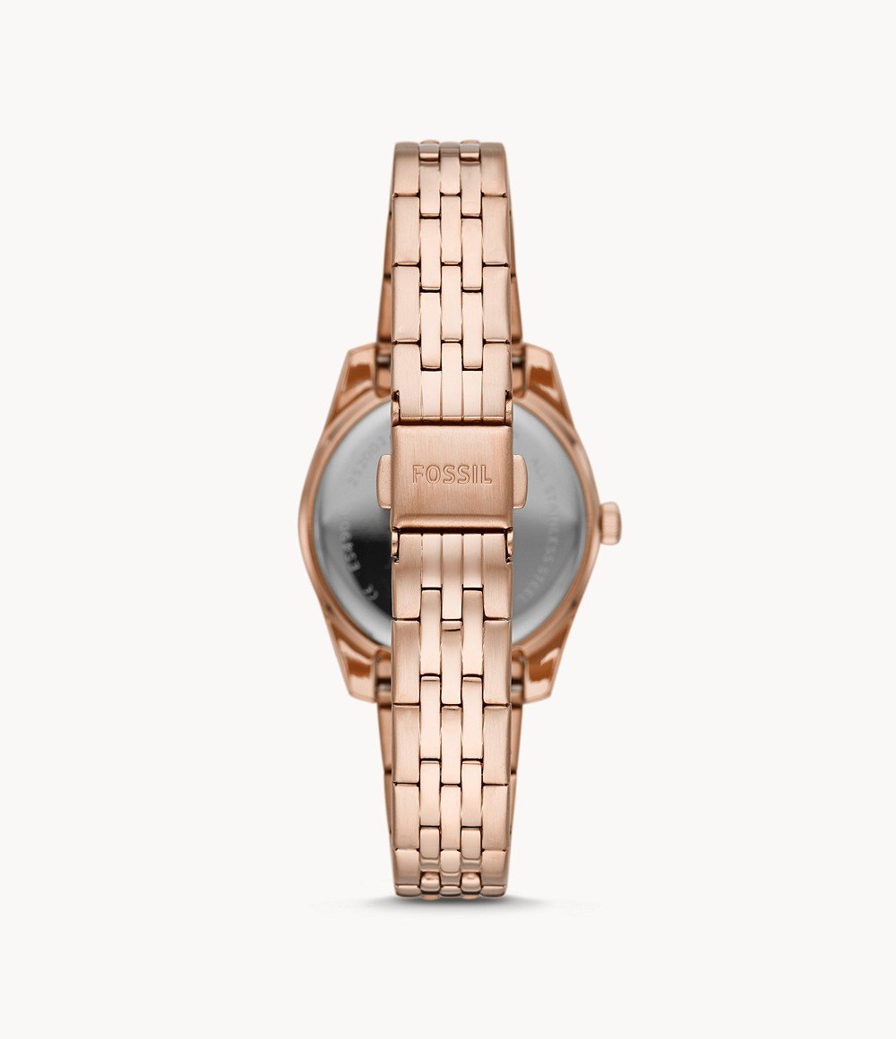 Fossil Women’s Scarlette Mini Three-Hand Date Rose Gold-Tone Stainless Steel Watch ES4898