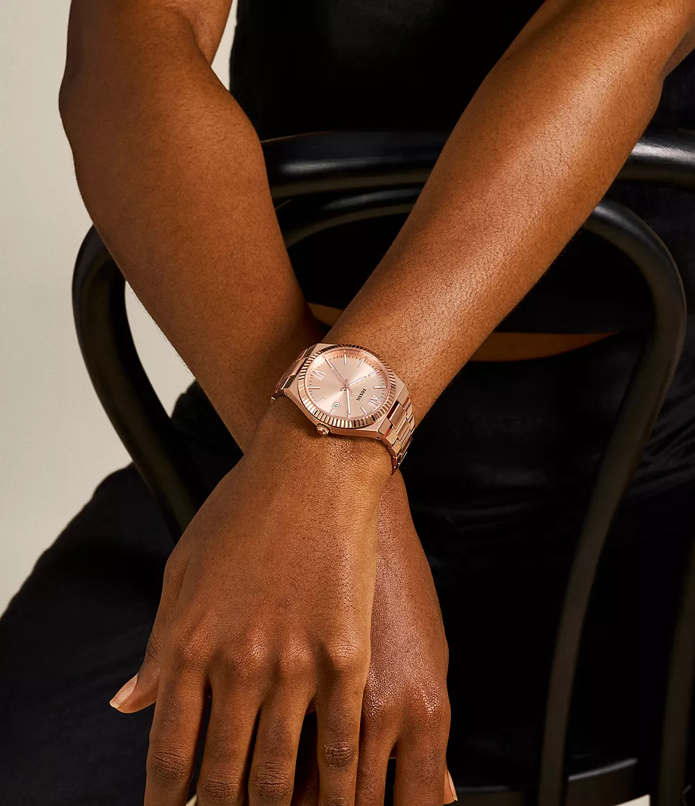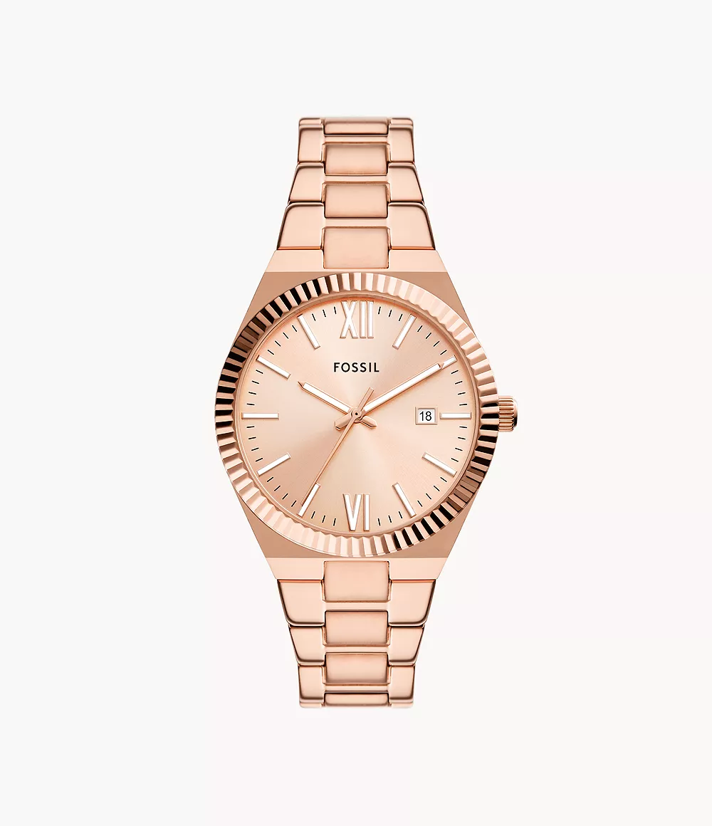 Fossil Women’s Scarlette Three-Hand Date Rose Gold-Tone Stainless Steel Watch