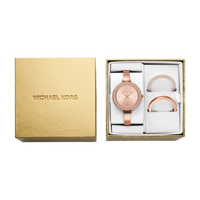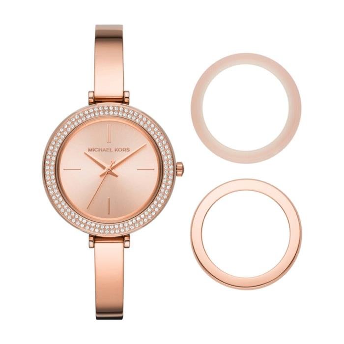 Michael Kors Women’s Ladies Watch In Rose Gold Stainless Steel, Interchangeable Bezels MK4435