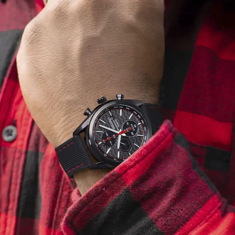 The SSC777P1 will stand the test of time with its sporty, urban look. Equipped with a high-performance quartz movement, this model ensures formidable precision. Equipped with a chronograph mechanism, this watch features a stainless steel case and carbonised titanium coating. It comes with a silicon strap, accented with red stitching.